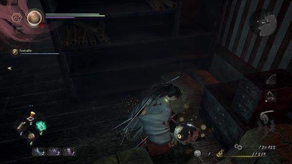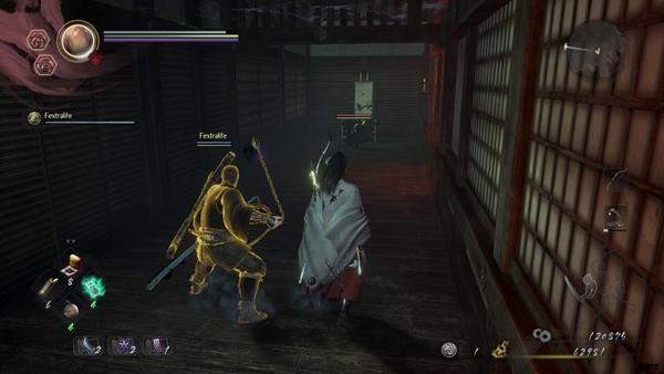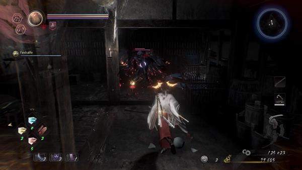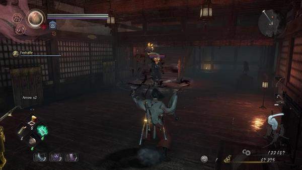 After using the hot spring, approach the mist that’s blocking the stairs leading to the third floor. The yokai within the mist is a Rokurokubi, after killing the yokai, make sure to loot the corpse under the stairs before heading up. On the third floor, you’ll encounter another soldier patrolling the area and a large chest at the corner of the stairs – when you’re ready, open the large door and a cutscene will trigger before fighting the boss.