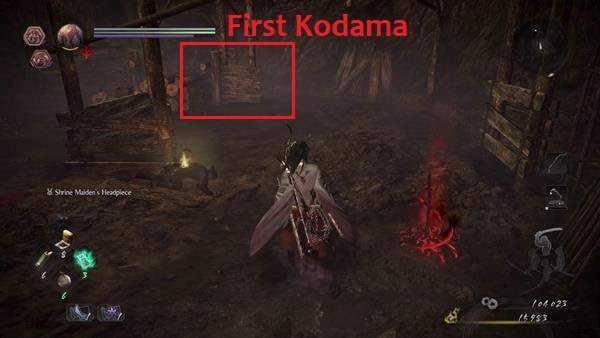 闇の領域をクリアしたら、神社まで歩いて左を見ると、5 番目のコダマが草むらに立っています。