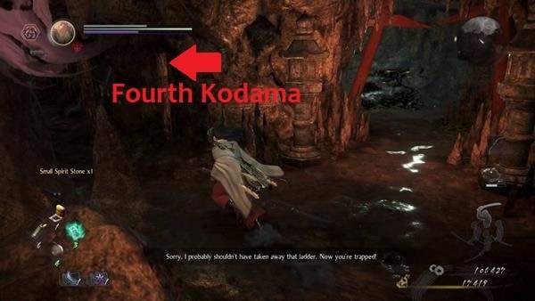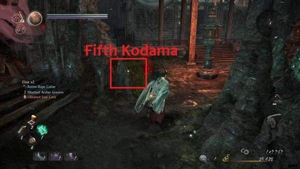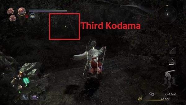 - 5 番目のコダマは、場所 4 の近くにあるダーク レルムのソースである片目の鬼に遭遇するダーク レルムで見つけることができます。左側を見てください。こだまが茂みの中に立っています。