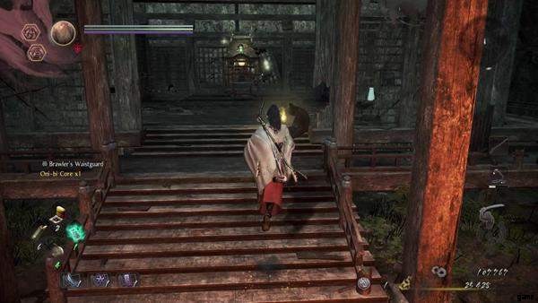 まず、はしごを蹴り倒してスタート地点付近に近道を開けます。右側には、餌をやるガキがいます。後ろからグラップリングして、ダウン中にフィニッシャーでフォローアップすることも、妖怪を倒した後に死体を略奪することもできます.部屋の反対側に行き、あなたの下の木の床に降りて、光る死体に近づくと、2xの鬼火の妖怪が現れます.鬼火を倒したら、竹の構造物に降りて、近くにある 2 つの死体を略奪します。気づけば一番下に最初のこだまを見つけたところがあります。