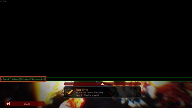 - Open KF-Biolapse?Difficulty=0?Gamelength=0 と入力し、Enter キーを押します (通常の難易度 – 短波)。