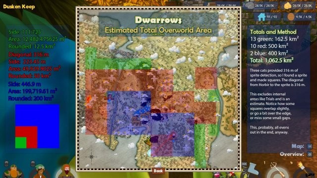 Dwarrows のプレイ可能/横断可能な表面積の概算。