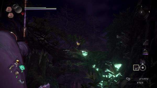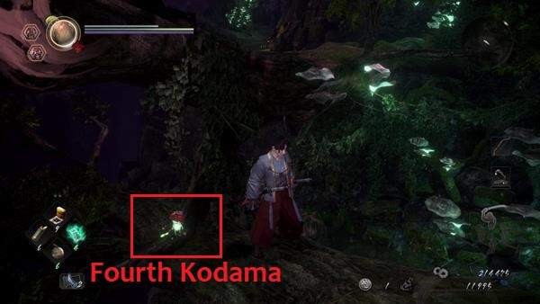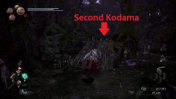 敵を倒した後、上に上がり、右に曲がってビワボクボクがいた木の枝に向かいます.略奪できる死体が見える端まで歩いてから、下にある別の枝に飛び降りて、4番目のコダマを見つけます.こだまを案内した後、下に戻って先に進むと、スポットライトが動く別のエリアに到達します。