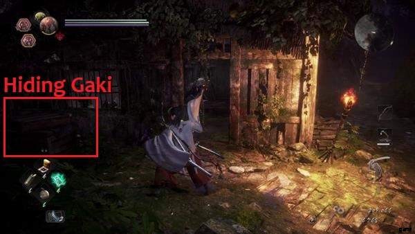 Assuming you’ve already killed the Mitsume Yazura and cleared the dark realm, go back to the entrance of the village and check the house that’s on the west side of the village entrance. There’s a body inside that you can loot and you’ll hear a yokai groaning which means there’s a Nurikabe wall in the house. Try using the gesture:“Backflip” for it to allow you to pass without fighting it. Behind the Nurikabe is a backdoor path where you’ll find a Warrior Skeleton standing next to a glowing pot – at the end of it, you’ll come out of a house in the inner part of the village.