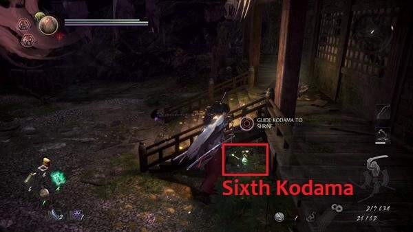 After you’ve killed all the enemies, go up to the closed temple. You’ll find two things here, under the stairs of the temple, you’ll find the sixth Kodama.