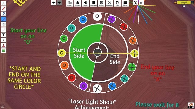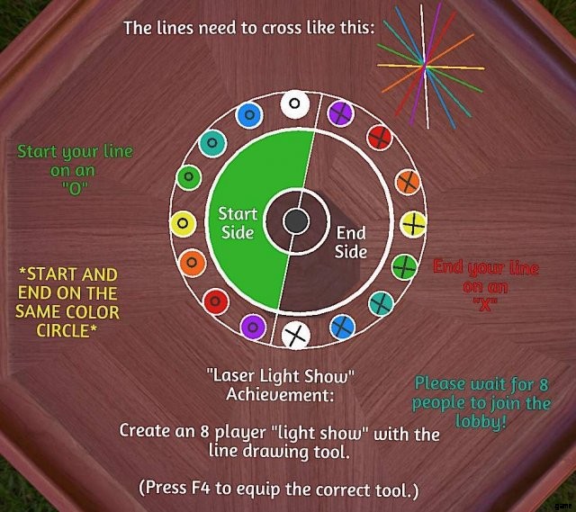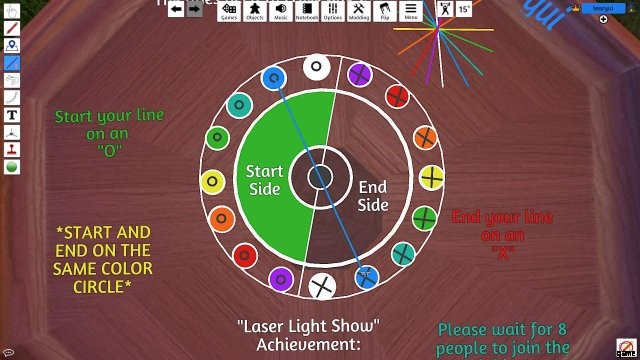 ロビーには 8 人のプレイヤーが必要です。誰もが線ツールに触れる必要があり、これを行う最も簡単な方法は星を作ることです。全員のセリフが星の真ん中で交わるようにしましょう!