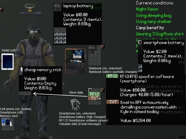 <オール>「メモリースティック」と呼ばれるゲーム内のデータ用の特別なハードウェア コンテナがあり、データやソフトウェアを保存してデバイス間で転送できます。このコンテナを使用して、貴重なデータをトレーダーに販売し、トレーダーから特別なソフトウェアを購入してインストールします。