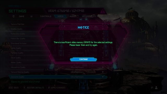 メインメニューに戻り、設定をもう一度開きます。ウルトラナイトメアが適用されます。