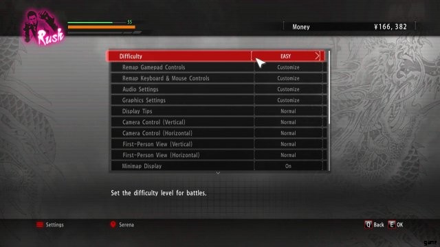 最後に、上部に「難易度」と表示されます。「EASY」と表示されるまで左矢印をクリックしてから保存します。これにより、このボス戦を適切に完了することができる特別な機能が有効になります。