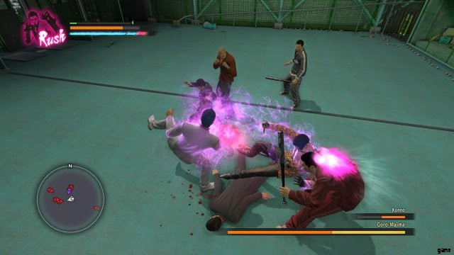 バッティング ケージに進み、戦いを開始します。ステップ 1 を正しく行った場合、Majima はより脆弱になり、スタンロック攻撃サイクルをアクティブにしないため、Majima を圧倒することができます。この戦闘中はラッシュを使用できます。