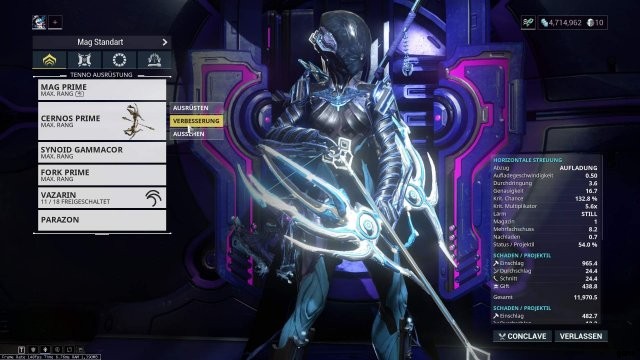 - + (右の Riven mod を使用) 良い (クリティカル率が 100% の場合) 矢ごとのダメージ