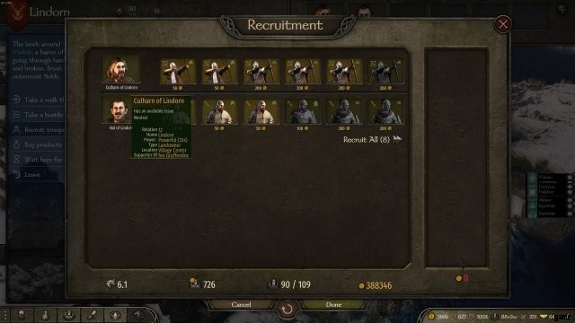 - さらに「強力な」土地所有者を作成することもできます。彼らのためにクエストを行うことで、彼らのパワーレーティングは徐々に増加します - 通常、クエストごとに5増加します.キャラクターが「強力」と見なされるには、少なくとも 200 のパワー レーティングが必要です。クエストを行うと、より多くの募集スロットのロックも解除されます。