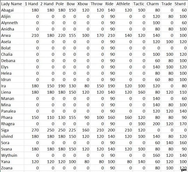 Mount &Blade II:Bannerlord – すべての独身女性の統計
