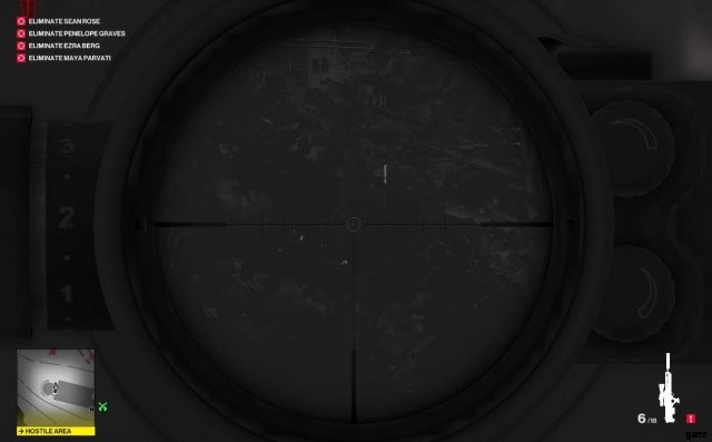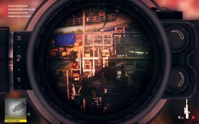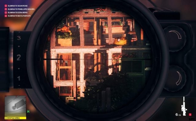 ペネロペスのルートで、彼女は一人で温室に足を踏み入れました。彼女がそうするとき、まだ彼女を撃たないでください。彼女は温室の中をさらに歩き、下の画像で部屋が狙われている温室の奥の部屋に入ります。彼女が保存したら、彼女を狙撃します。一部の警備員が聞いて調査します。