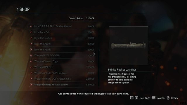 インフィニット ロケット ランチャーは、難易度に関係なく、ゲームをクリアするまで購入できません。