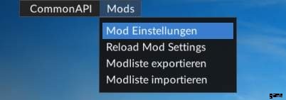 - CommonAPI がある左上の Mods をクリックします。次に [Mod 設定] をクリックします。