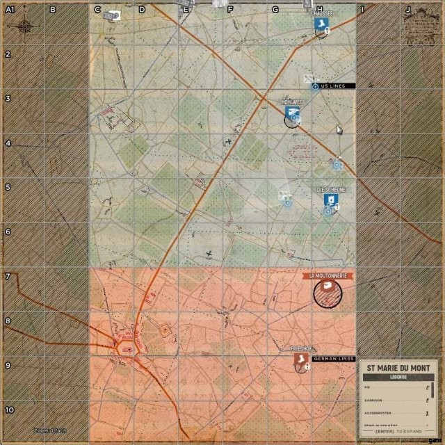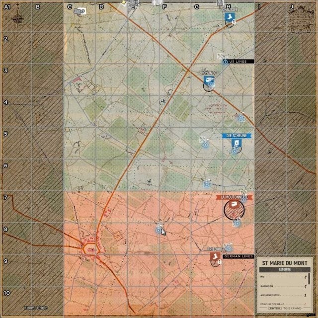 これは、守備隊にとって理想的な設定になる可能性があります。私たちはアメリカ側が浜辺を占領したと仮定していますが、このセットアップは彼らがそうする前に準備ができているはずです.常駐チームの制限が 10 駐屯地であることを確認してください。