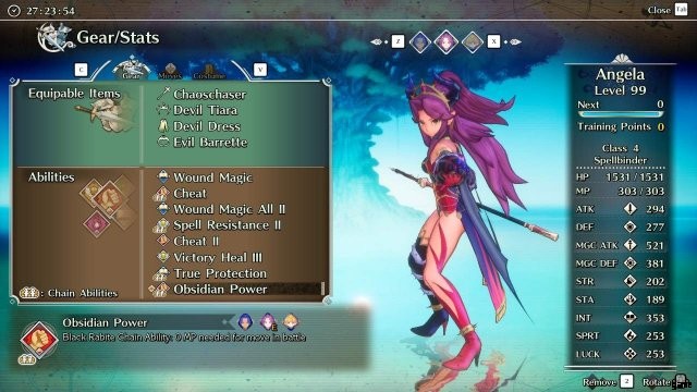 Rune Seer> Spellbinder になった Level 99 の Angela を実行していますが、レベル 77 前後の適度に装備された Angela で、以下のアビリティのセットアップと適切な武器で十分です。基本的には、呪文をできるだけ強力にヒットさせたいと考えています (そのため、いくつかのチートといくつかの創傷魔法を最小限に抑えます)。
