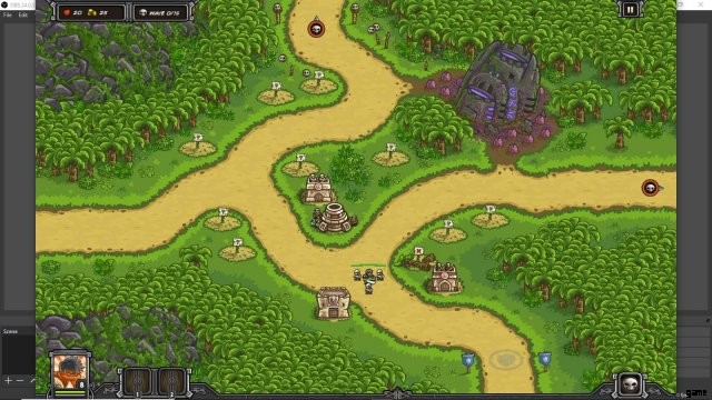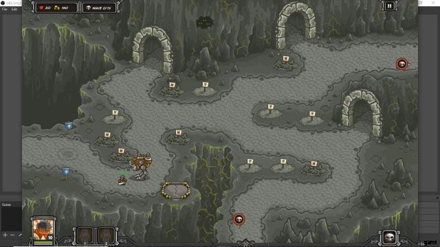 This is an outline of how I built my towers. The three artillery near the center became battle mechas. The two other artillery became DWAARPs. The mage tower became a necromancer, and the archer tower by it became a tribal axethrower. The other archer towers were crossbow forts, and the rocks by the east exit became…anything (probably a crossbow fort).
