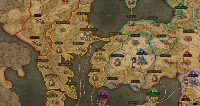 いくらかのお金とリソースを生成したらすぐに、部隊をレベル 2 と (可能であれば) 3 にアップグレードし始めます。平凡な将軍が 4 人いるよりも、強力な将軍が 2 人いる方がよいことに注意してください。戦闘に適した将軍が 2 人以上いる場合 (それぞれ少なくとも 3 部隊、レベル 2 以上)、最も弱い隣人を選び、彼に宣戦布告します。都市の 1 つをクリックすると、別の王国の軍隊を確認できます。ゲームの開始時に宗教指導者を満足させておくために、最初に異なる宗教の王国を攻撃することをお勧めします。