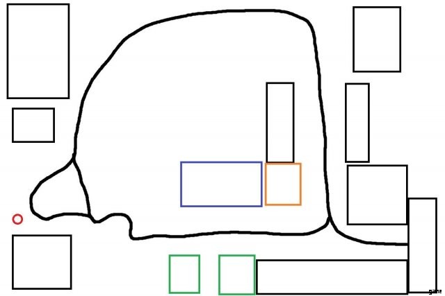 まず最初に、簡単なマップの説明です。私はあまり芸術的な傾向があるわけではないので、これは重要な要素がどこにあるかについての必要最小限のアイデアにすぎません。