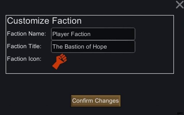 これにより、新しく設立された派閥の名前、タイトル、アイコン (実装されていない atm) を設定できます。