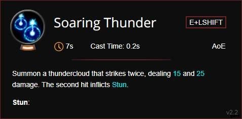 - ソアリング サンダーとの非常に強力なシナジーがあり、ストーム ボルト + ソアリング サンダー + ショック ブラストのフル コンボで、合計 66 のダメージを与えることができます。