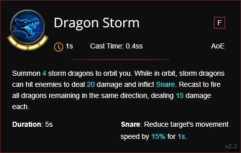 - 敵のモビリティ スペルがクールダウン中の場合、ストーム ボルトをドラゴン ストームの 2 回目のキャストと組み合わせて、合計 70 (マンデート オブ ヘヴンでは 85) のダメージを与えることができます。