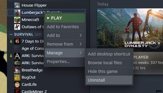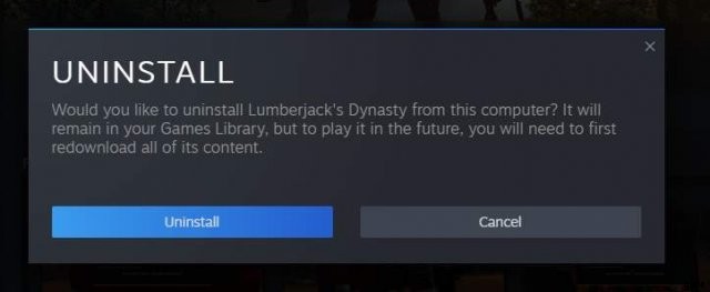 このゲームはゲーム ライブラリに残りますが、もう一度プレイするには、最初にすべてのコンテンツを再ダウンロードする必要があります。この手順は、すべてのゲーム ファイルがコンピューターから消去された後に実行されます。