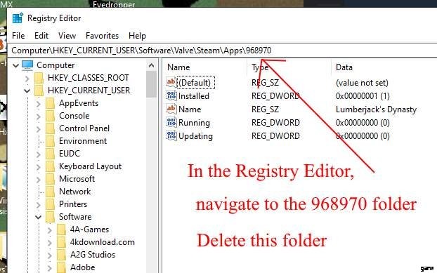 レジストリ エディターで、Lumberjacks Dynasty のフォルダーに移動します。