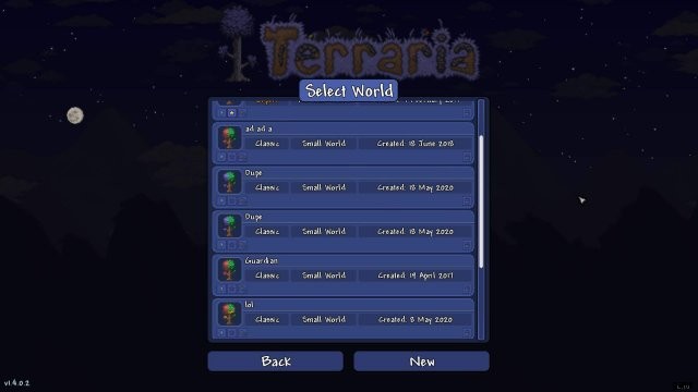 Terraria を再度開くと、同じ名前のワールドが 2 つあるはずです。