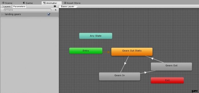 もちろん、デフォルトの飛行機のアニメーターに引き寄せられるかもしれませんが、必要なパラメーターは bool パラメーターのランディング ギアだけです。
