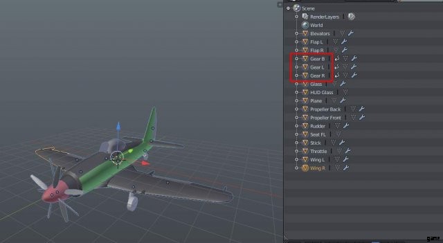なんらかの理由でこの飛行機をエクスポートしてテストすると、ランディング ギアは動作しません。つまり、アニメーターを再接続するまでは。