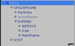 ここで、アニメーターは spaceframe オブジェクトにあり、階層 (少なくとも、飛行機をアニメートするために使用するボーン) は、blender にあったものと一致します。