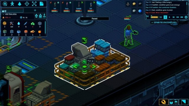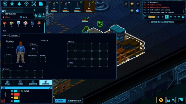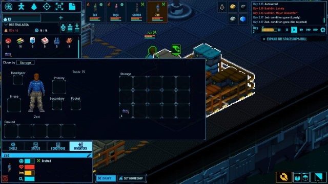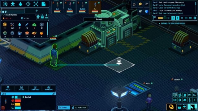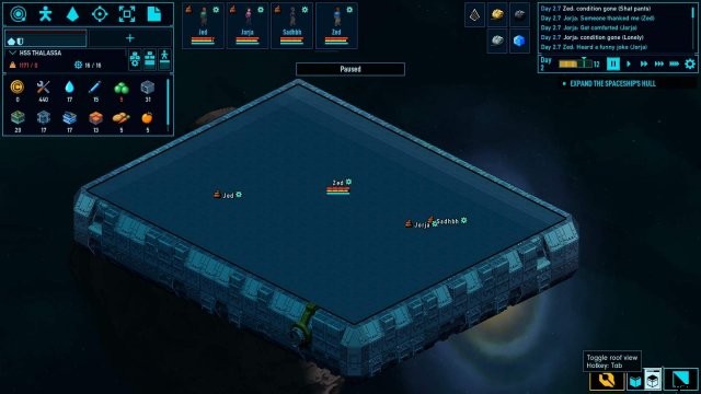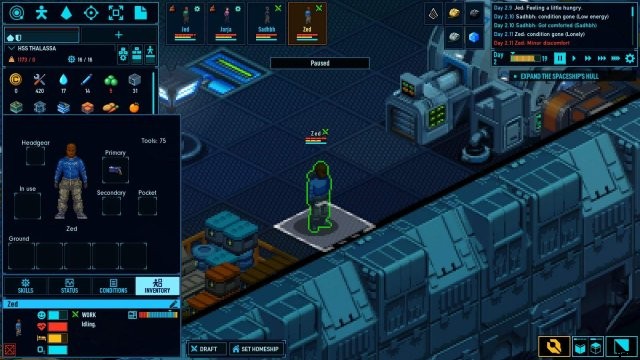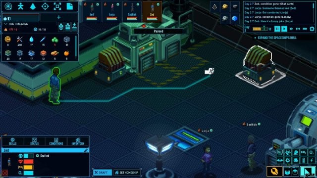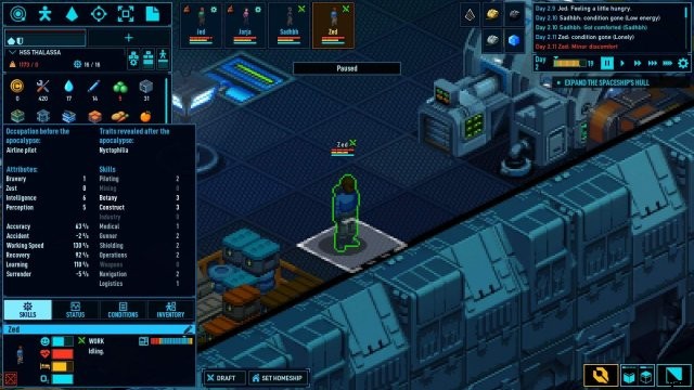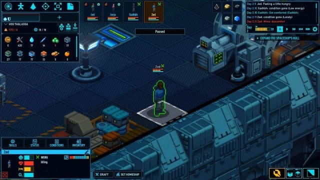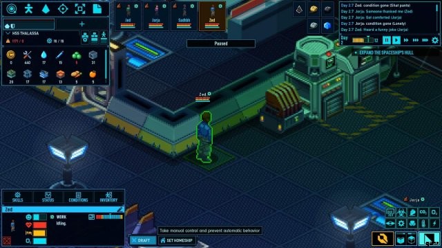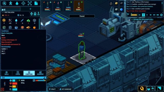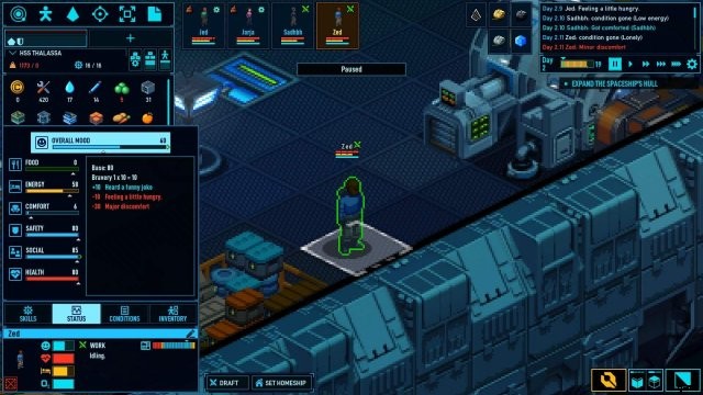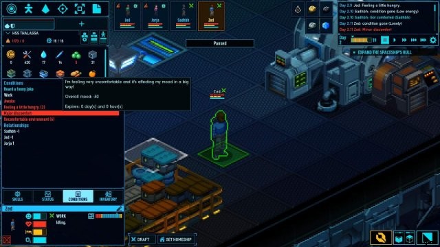 ステータスメニューは、その人のリアルタイムのニーズ/感情を保持します。ここでは、この人が少しお腹が空いていて、大きな不快感を感じていることがわかります。