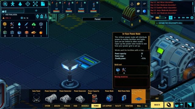 電源アイテムがあるエリアにノードを配置することを忘れないでください。下の画像は、居住区に電力を供給するノードを示しています。