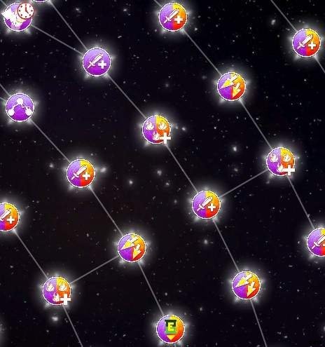 要素間の白い領域は結合ノードであり、接続している両方の要素の効果/統計をブーストします: