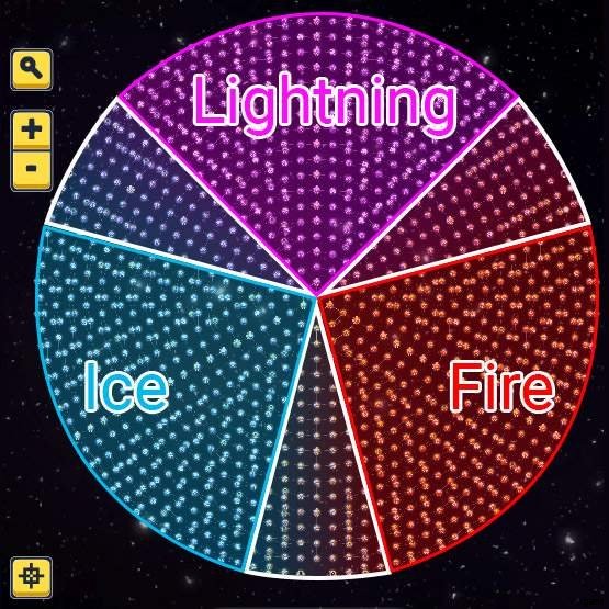 ウィザードには、稲妻、火、氷の 3 つの要素があります。ここで見られるように、各要素はレベル グラフ上で方向を持っています: