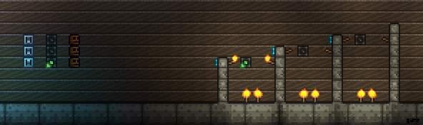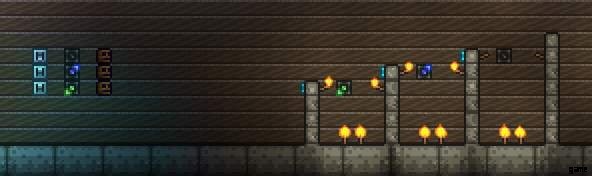 私がやりたかったこの解決策は、何かが信号を受信し、信号を送信することでした。しかし、Terraria には [私の知る限り] このように動作するものは何もないので、いじって、もう少しクリエイティブなものでリレー信号を作成しようと試みたところ、これまでに遊んだことのない新しい機能に気付きました。新しいTeal Pressure Padで。そして、その Projectile touch it プロパティを使用して、何がトリガーになるかを試してみました。そして、これがダート トラップ リレー システムが作成された場所です。