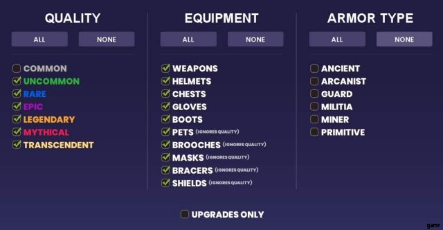 在庫には独自の戦利品フィルター オプションがあり、フィルターを選択してすべて販売すると、そのフィルターで選択したものだけが販売されます。