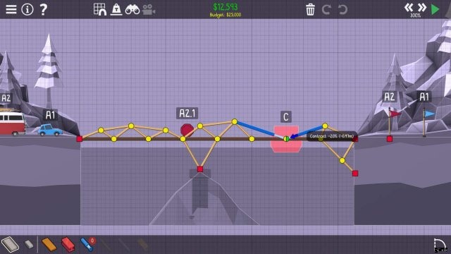 Poly Bridge 2 – パイン マウンテン (ワールド 1) の 100% ソリューション