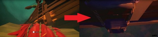 はしごを使って他の船に乗り込むのは騒々しく明白であり、他の乗組員が注意を払っている場合、ほとんどの場合、起き上がるとすぐに殺されます.敵の船が島から離れた場所に停泊していて、波が良ければ、敵の銛や手漕ぎボートを通り抜けて登ることができることを知っている人はほとんどいません。また、自分のマストに登り、ソード ランジ スラスト テクニックを使用して他の船に身を投げたり、大砲から自分を撃ったりして、それらに搭乗することもできます。