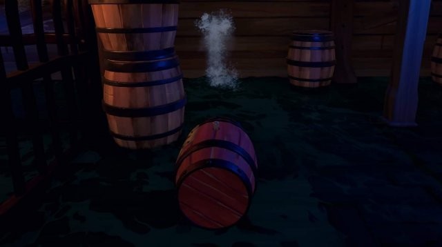 どの島にもあるもう 1 つの特別なチェストは、チェスト オブ レイジです。これも約 3000 コインの価値がありますが、水と接触せずに 2 分以上留まるか、大きなダメージを受けると、継続的に熱を発生させ、周囲のすべてに火をつけます。そのため、毎分バケツの水で濡らすことを忘れないでください。理論的には、下甲板に水の層を残し、チェストをそのままにしておくことができますが、しばらくするとチェストが水を沸騰させ、熱が蓄積し続けます。ソリューション?水の層はそのままにして、下甲板のバレルの 1 つの上にチェストを置きます。