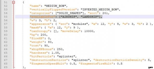 - Steam/steamapps/common/Airships Conquer The Skies/data/ModuleType/BOWS.json で中型または大型船首のファイルを探します。