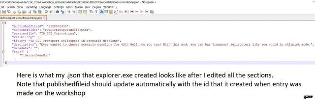 Command and Conquer Remastered 用に提供されたアップロード プログラムを使用して Steam ワークショップにアップロードするために必要なフォーマットのクイック ガイドです。