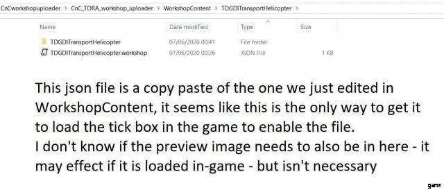 これは、Command and Conquer Remastered 用に提供されたアップロード プログラムを使用して Steam ワークショップにアップロードするために必要なフォーマットに関するクイック ガイドです。これはかなり一般的であるように思われるため、おそらくこのガイドは、他のゲーム用の他のアプリケーションのセットアップに使用できます。