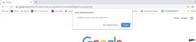 - リンクを貼り付けます。小さなウィンドウが表示されます。[mtlink ハンドラを開く] をクリックします。