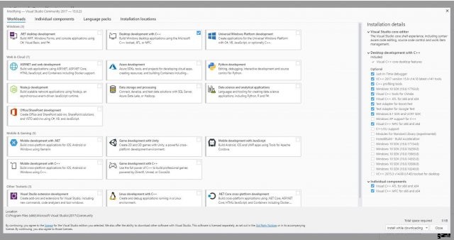 - 次に、C++ などの特定の機能を備えた Visual Studio を使用する必要があります。