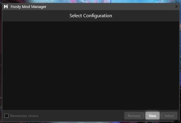 Frosty Mod Manager を起動します。このプログラムを初めて使用する場合は、プロファイルが表示されていないはずです。[新規] をクリックして、ゲームのプロファイルを設定してください。