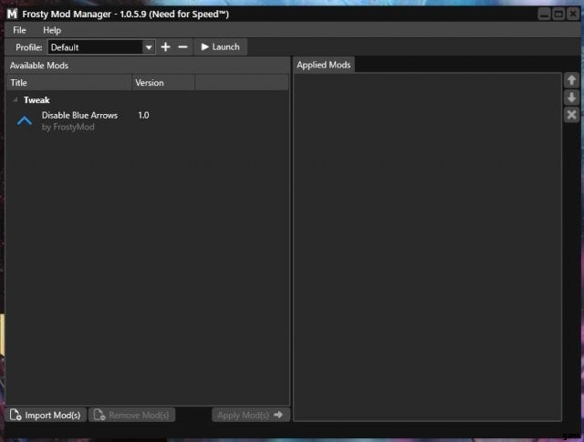 次に、ウィンドウの下部にある [Import Mod(s)] ボタンをクリックし、先ほどダウンロードした ZIP ファイルを選択します。すべてが機能していれば、[Tweak] セクションの下に mod が表示されます。